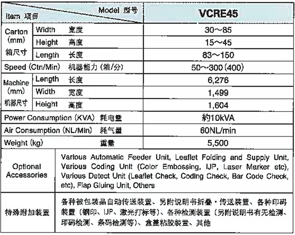Equipped with Quick Change Mechanism, Rotary Type Carton Pick-Up Unit, Large Volume Carton Magazine as its standard features, VCR-Q 1s the state-of-the art horizontal cartoner in every sense of word. All the know-hows established through the overwhelming market share are incorporated into a plentiful of options available too.
